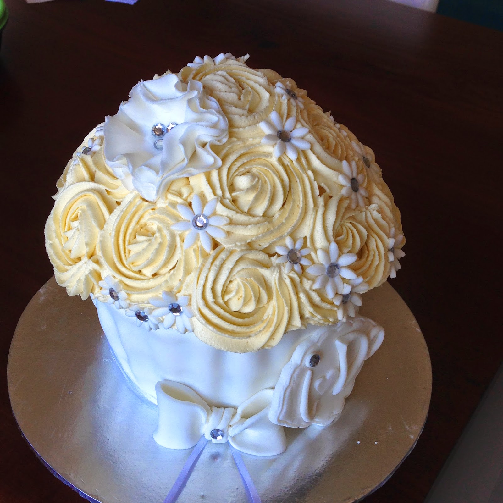 This giant cupcake was created as a gift for a Bride on her wedding day. She absolutely loves cupcakes and her Future Sister-in-law wanted to spoil her with something special so she thought this would be perfect!